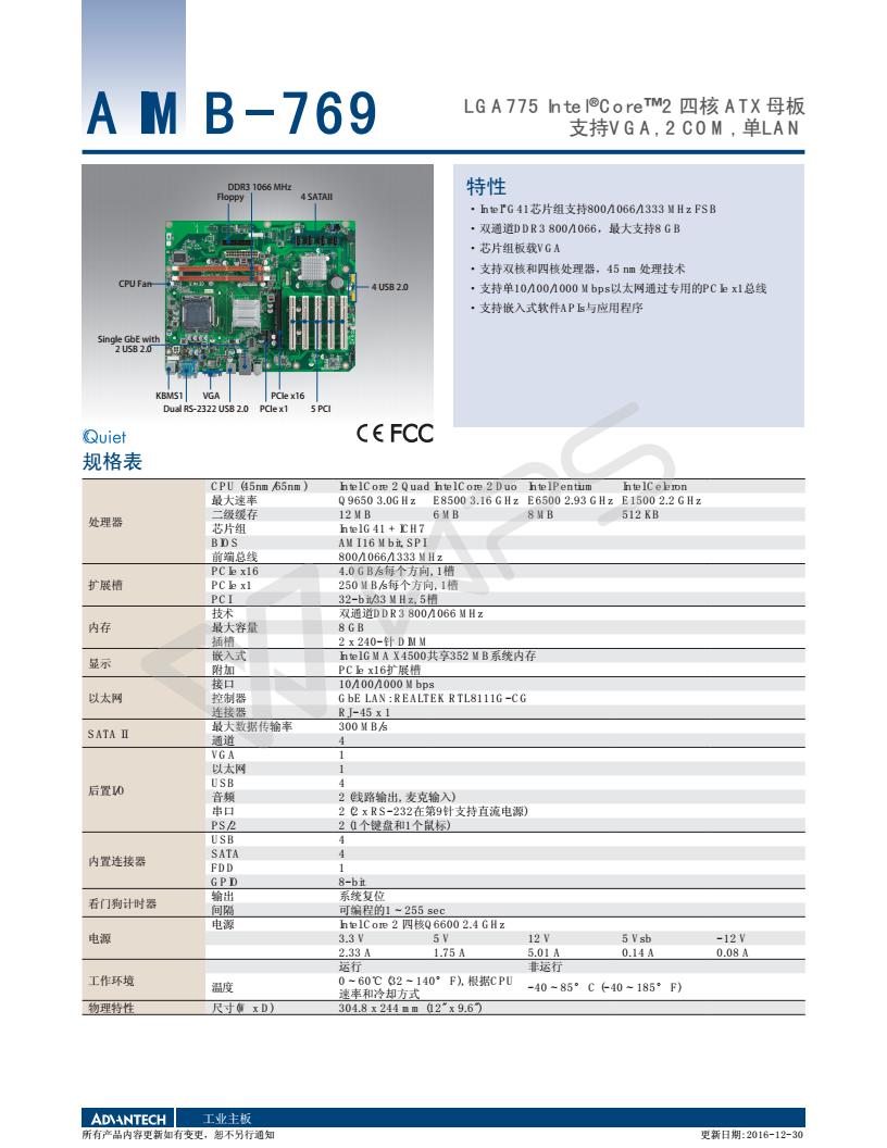 LGA775 Intel 酷睿2四核ATX母板,支持VGA, 2 COM, 單LAN